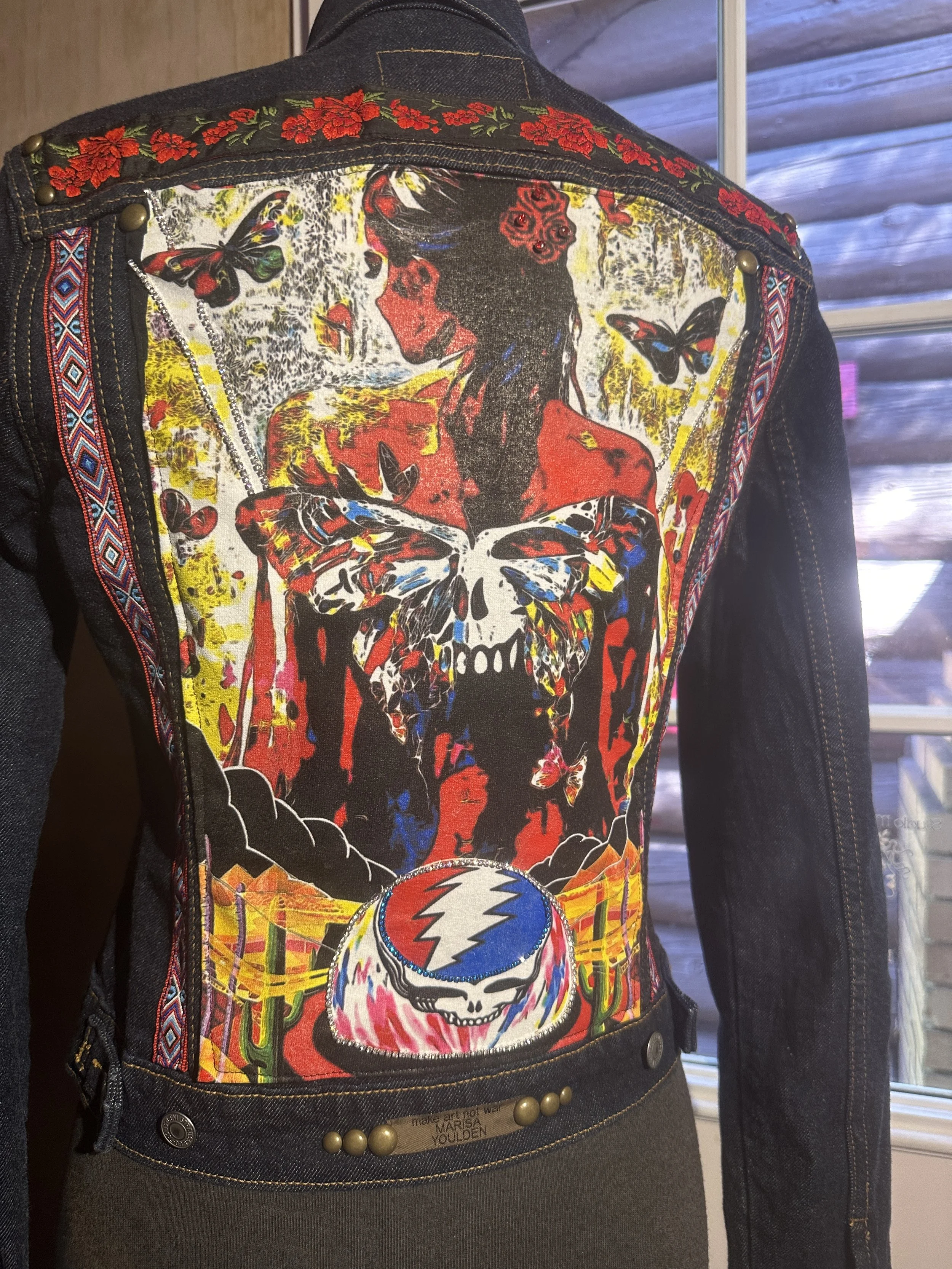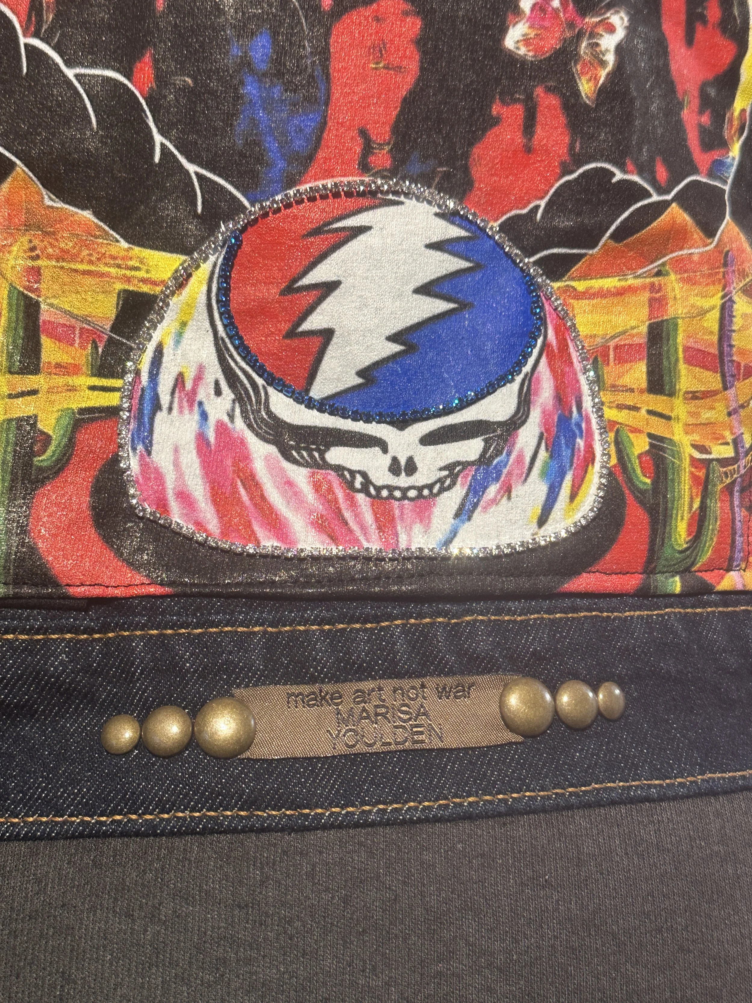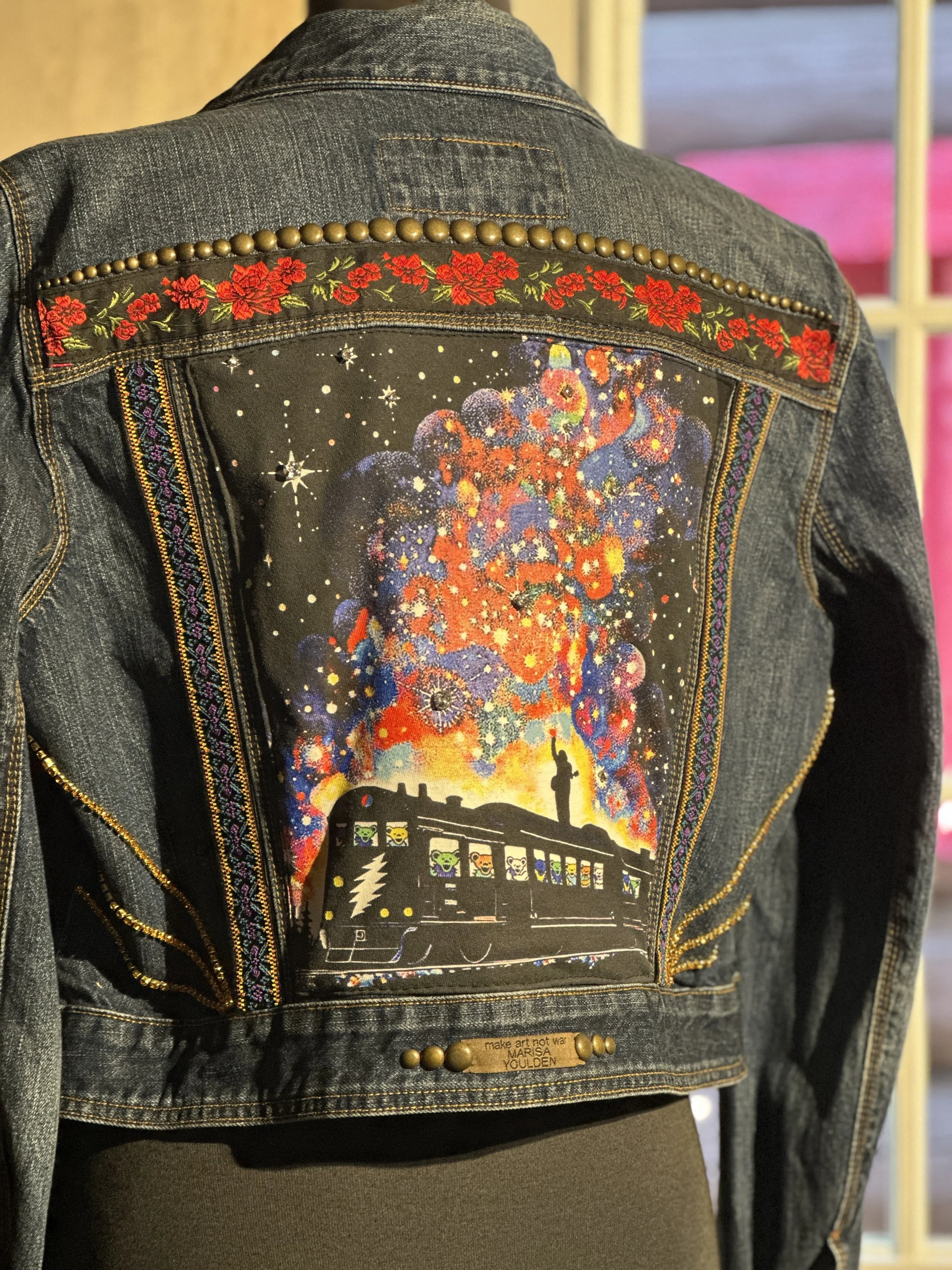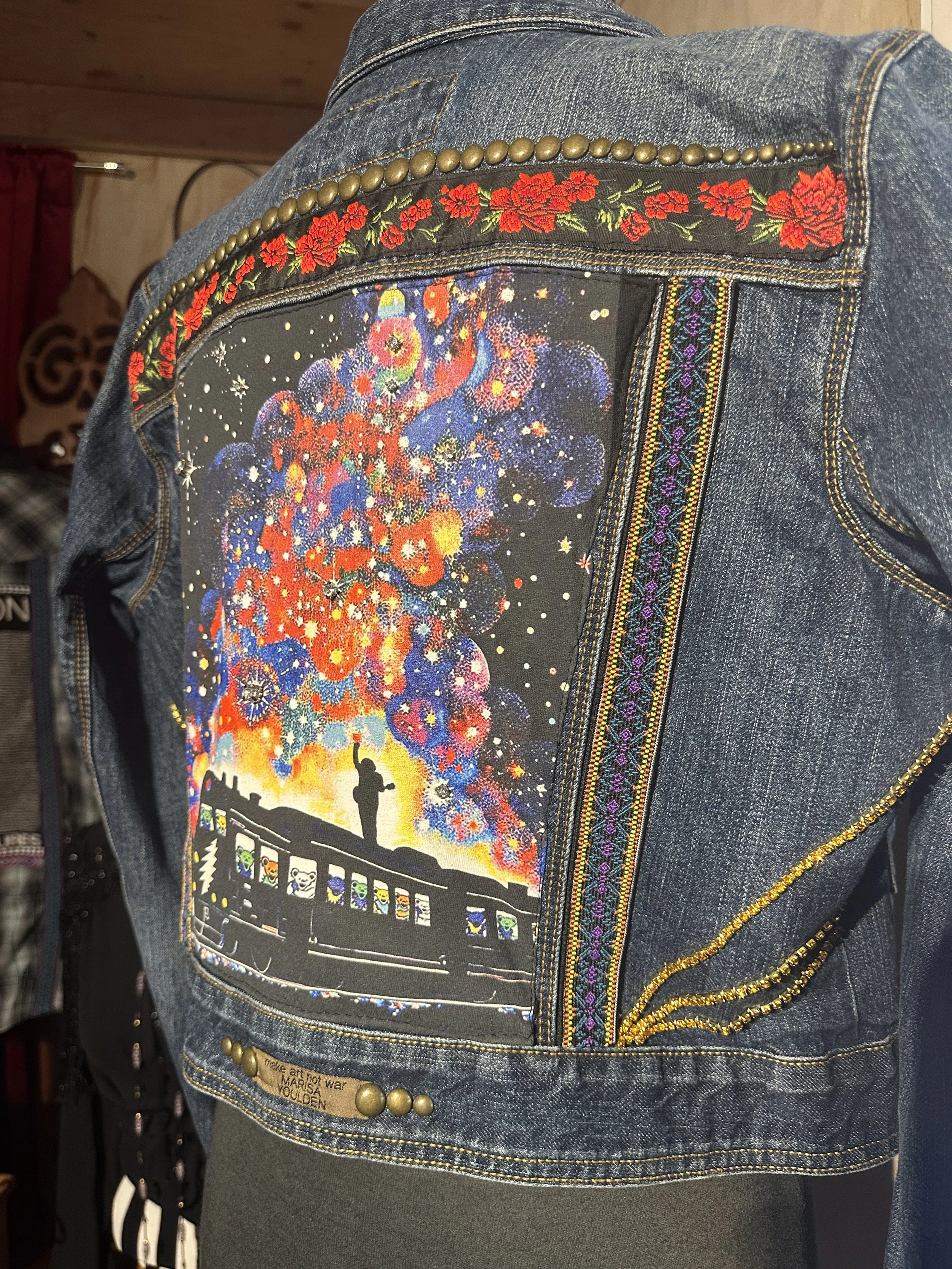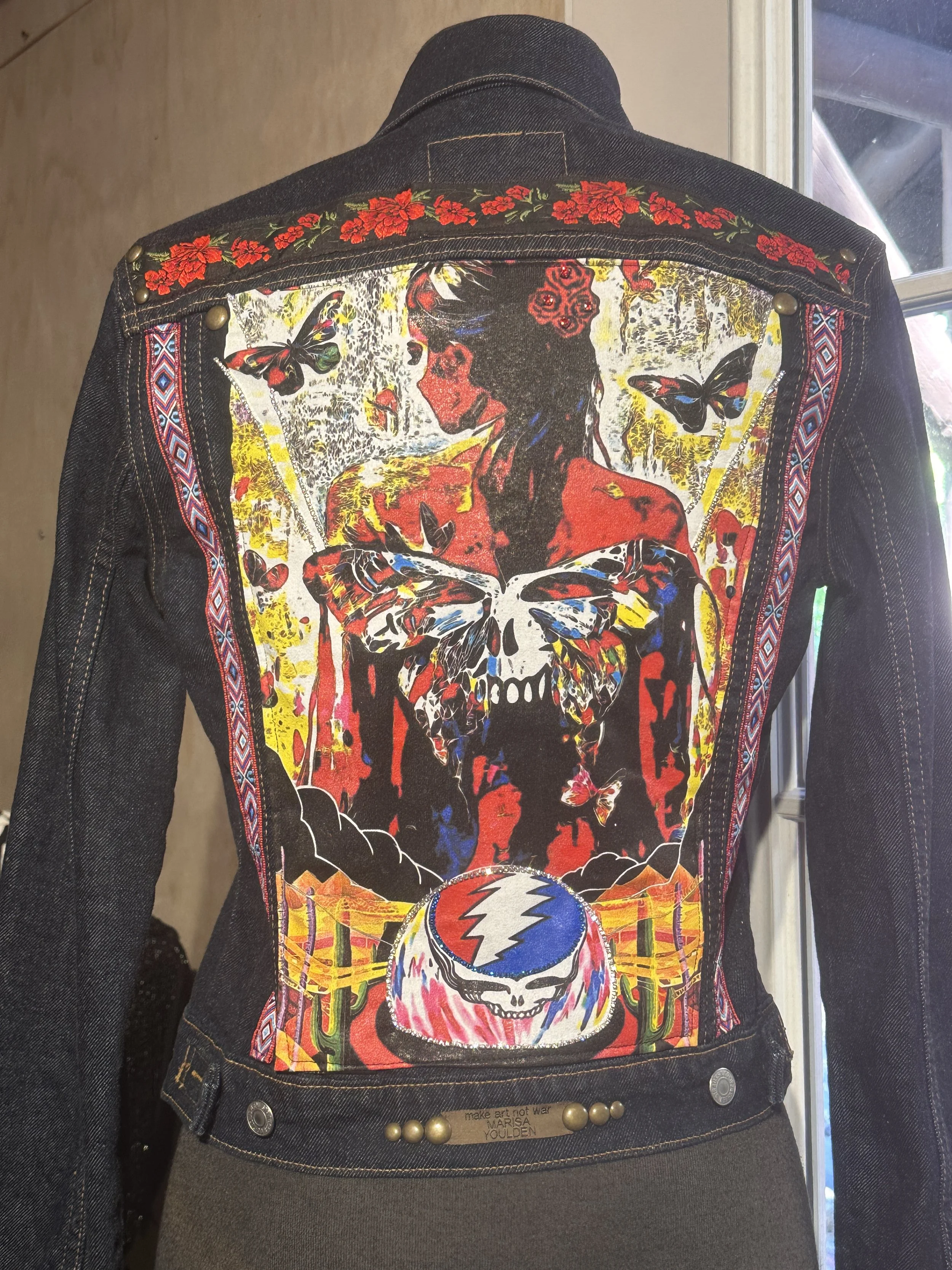 Categories: All Custom Denim Jackets & Shirts Menswear or Women's wear Print Art Products by Marisa Marisa Youlden Jewelry Paintings & Art Pre Loved Jewelry Shop All Custom Denim Jackets & Shirts Menswear or Women's wear Print Art Products by Marisa Paintings & Art Pre Loved Jewelry Quick View Upcycled Embellished Carhartt Flannel w Vinatge Batik Buddha image $75.00 Quick View Embellished Up cycled Levi's Denim Shirt w Krishna Batik $75.00 Quick View Vintage Batik Lotus Goddess Flannel by Marisa Youlden $75.00 Quick View ACDC Hand Embellished Men's Denim Jacket by Marisa Youlden $250.00 Quick View ACDC Embellished Desert Son Flannel by Marisa Youlden $90.00 Quick View Vans Men's Shirt with VW Graphic Tee Print by Marisa Youlden $75.00 Quick View Vintage Wrangler Phish Shirt Mens M $100.00 Quick View Sphere Embellished Denim jacket by Marisa Youlden $250.00 Sold out Quick View Grateful Dead 50th Anniversary Aoxomoxoa Denim Jacket Men's by Marisa Youlden $275.00 Sold out Quick View Phish Fall Tour 2019 Embellished Denim Jacket by marisa youlden $250.00 Quick View Trey Anastasio Embellished Denim Jacket by marisa youlden $250.00 Quick View HuckBerry Grateful Dead Embellished Denim Jacket by Marisa Youlden $275.00 Sold out Quick View Jerry on the Soullllllll Train Embellished Denim Jacket $250.00 Quick View Leopard Fringe Customized Denim Jacket $275.00 Sold out Quick View Nirvana In Utero Customized Denim Jacket $250.00 Quick View Jerry- Orange Tag Vintage Levi's Vest $250.00 Sold out Quick View Freshwater Pearl Charm Necklace Stack by Marisa Youlden from $90.00 Quick View Micro faceted Turquoise Charm Necklace stack by Marisa Youlden $125.00 Quick View Lapis Lazuli Charm Stacker necklaces by Marisa Youlden Jewelry $125.00 Quick View Faceted Black Ethiopian Opals Charm Necklace Stack from $80.00 Quick View Ethiopian Black Fire Opals Charm Necklace stack $140.00 Quick View Pyrite Charm Necklace stack $125.00 Quick View SOLD OUT***Bob Marley Embellished Denim Jacket by Marisa Youlden $250.00 Sold out Quick View Uncle Sam Chopper Mens Denim Jacket $250.00 Sold out Quick View Get Your Own CUSTOM Jacket ... Lets Design One! $250.00 Sold out Quick View Fire on The Mountain Women's Denim Jacket Sale Price: $175.00 Original Price: $250.00 Sale Quick View Not Like Other Girls... Denim Upcycled Jacket by Marisa Youlden $250.00 Quick View Customized Vintage Wrangler Western Shirt by Marisa Youlden $100.00 Quick View Customized Vintage Wrangler Shirt By Marisa Youlden $120.00 Sold out Quick View Cotton Tee featuring Talent Oregon, Log Cabin & Cowgirl $30.00 Quick View Tank Top - Log Cabin and Cowgirl Design by Marisa Youlden $25.00 Quick View Log Cabin Art Cotton Canvas Tote Bag - Marisa Youlden Studio MYJ $20.00 Quick View Log Cabin Soy Candle (Multi-Size, Amber Jar) Print by Marisa Youlden from $14.00 Quick View Studio MYJ Logo Scented Soy Candle, 9oz $22.00 Quick View Cheese-Themed Canvas Lunch Bag with Strap $16.00 Quick View Wine & Cheese Money Zipper Pouch - Fun Accessory for Wine Lovers $12.00