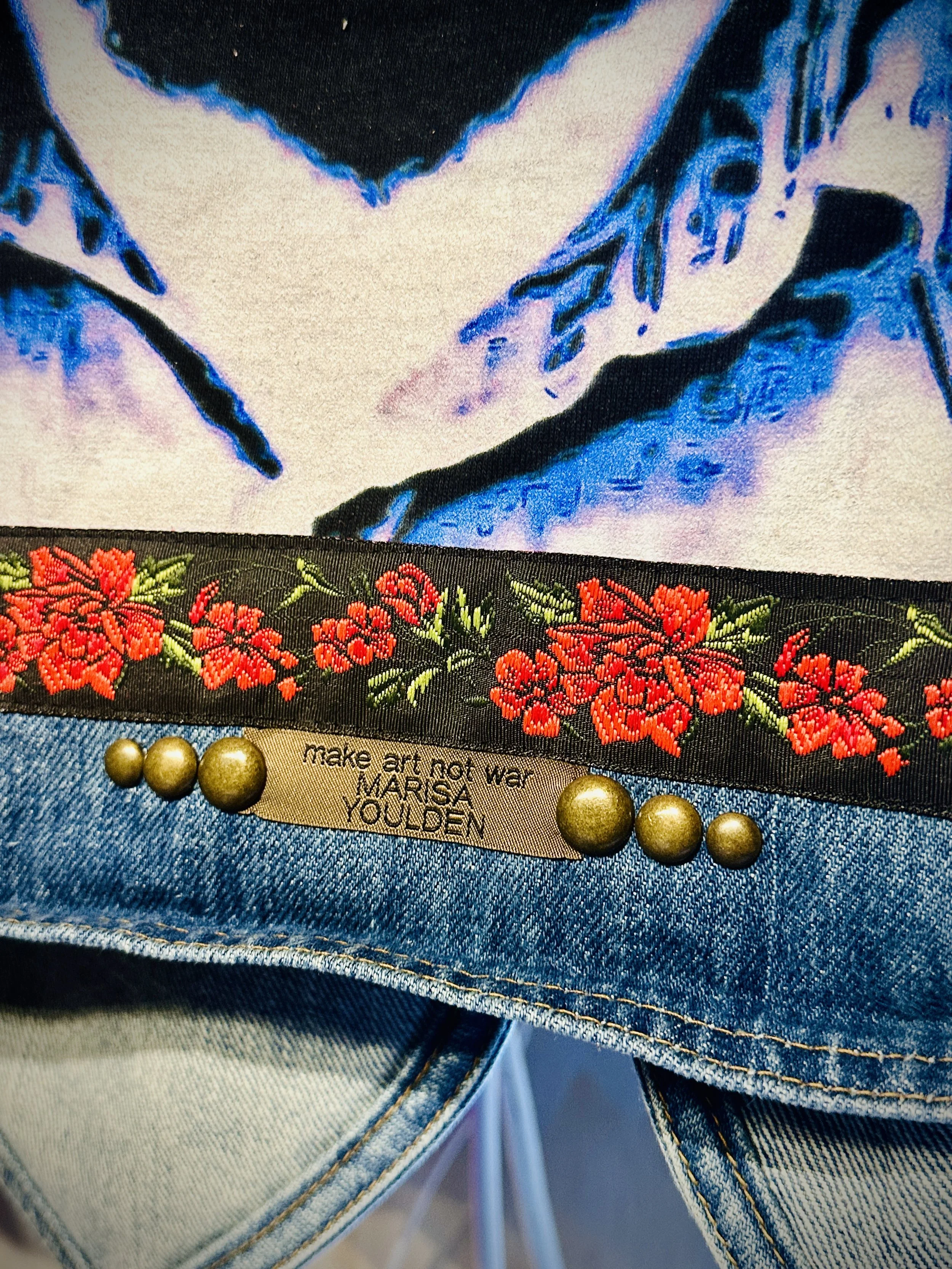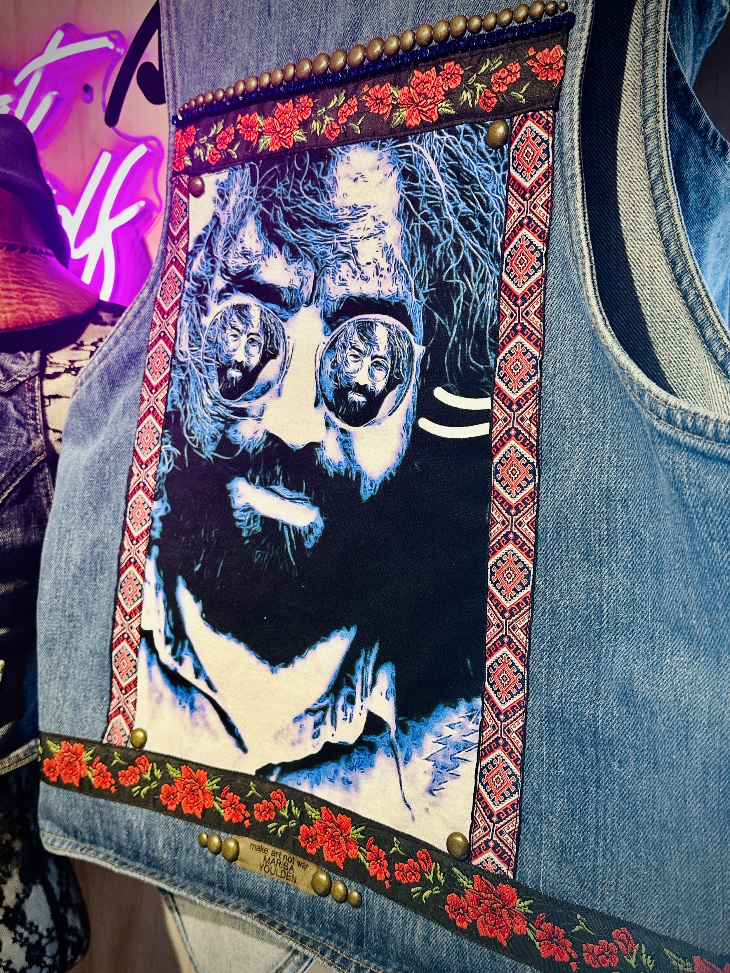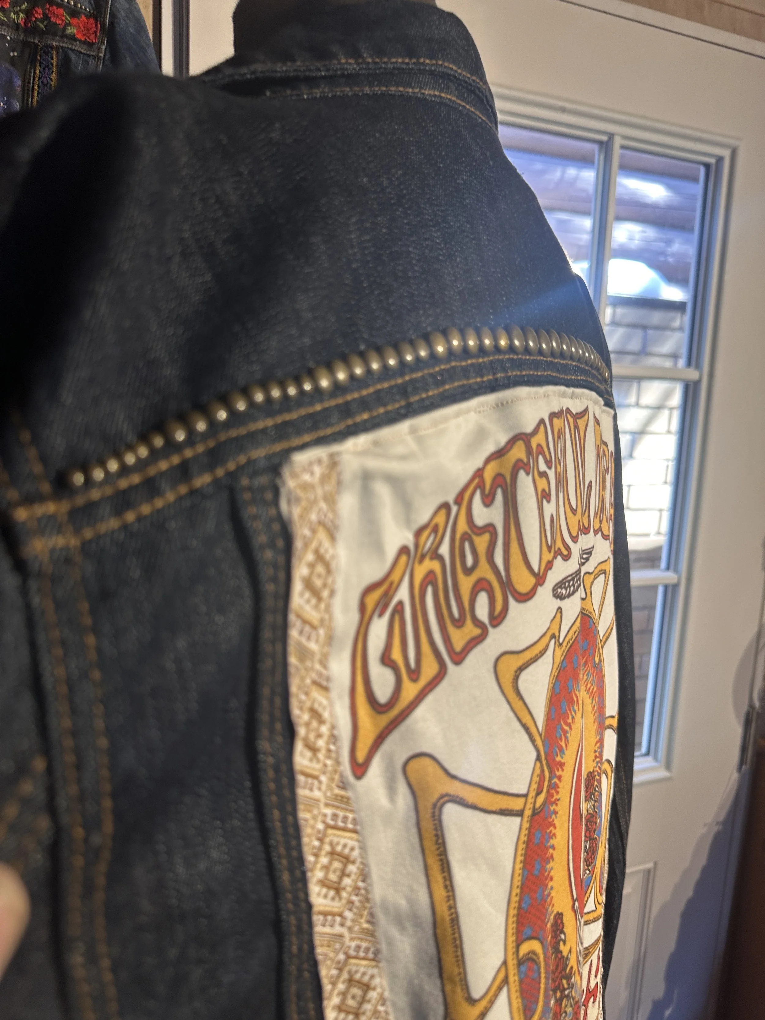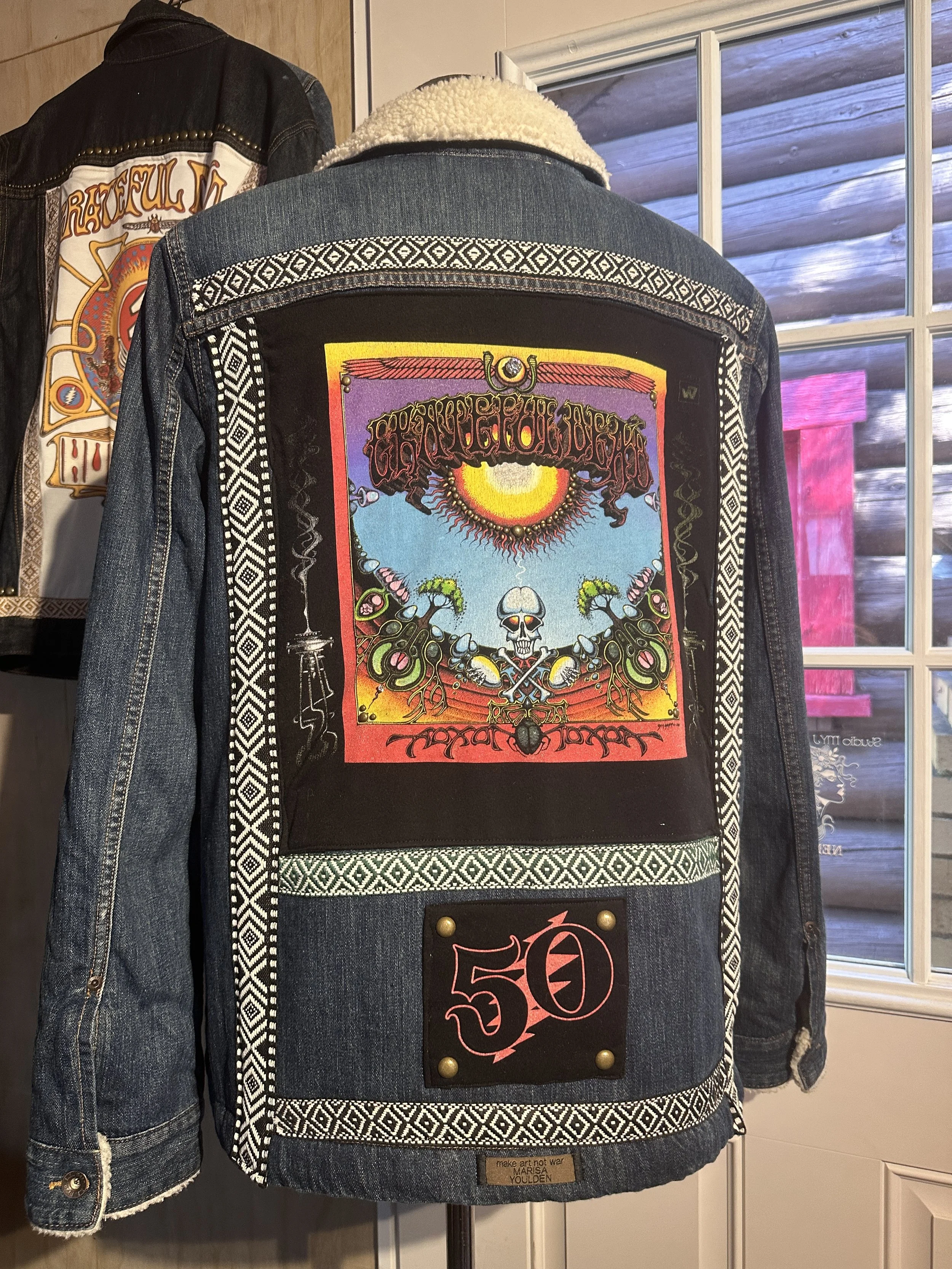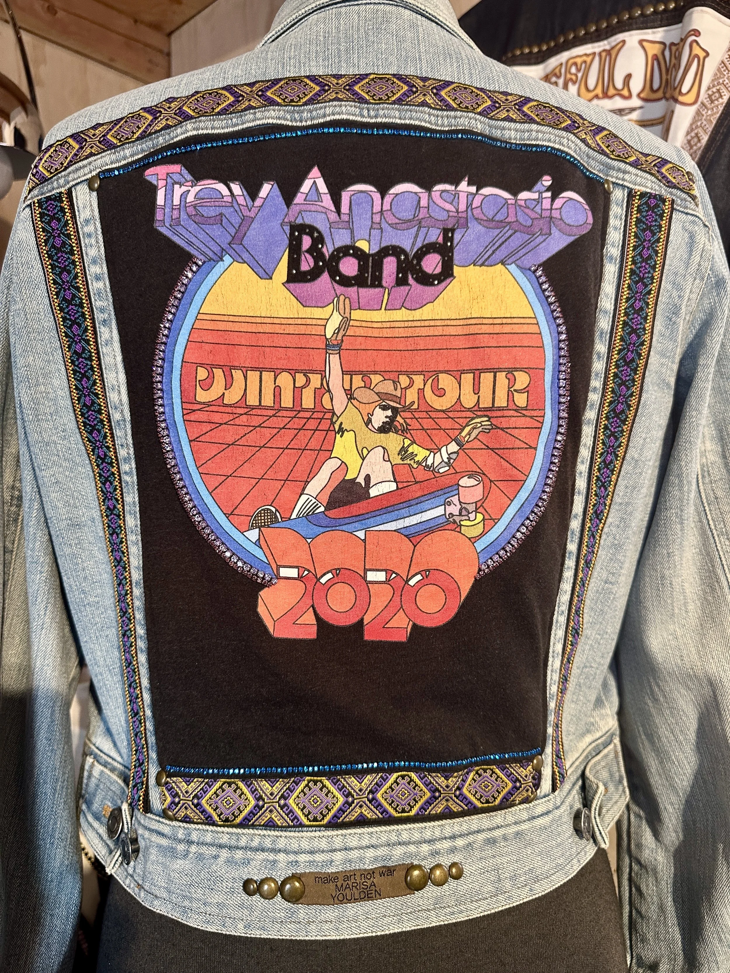 Categories: All Custom Denim Jackets & Shirts Menswear or Women's wear Print Art Products by Marisa Marisa Youlden Jewelry Paintings & Art Pre Loved Jewelry Shop All Custom Denim Jackets & Shirts Menswear or Women's wear Print Art Products by Marisa Paintings & Art Pre Loved Jewelry Quick View Upcycled Embellished Carhartt Flannel w Vinatge Batik Buddha image $75.00 Quick View Embellished Up cycled Levi's Denim Shirt w Krishna Batik $75.00 Quick View Vintage Batik Lotus Goddess Flannel by Marisa Youlden $75.00 Quick View ACDC Hand Embellished Men's Denim Jacket by Marisa Youlden $250.00 Quick View ACDC Embellished Desert Son Flannel by Marisa Youlden $90.00 Quick View Vans Men's Shirt with VW Graphic Tee Print by Marisa Youlden $75.00 Quick View Vintage Wrangler Phish Shirt Mens M $100.00 Quick View Sphere Embellished Denim jacket by Marisa Youlden $250.00 Sold out Quick View Grateful Dead 50th Anniversary Aoxomoxoa Denim Jacket Men's by Marisa Youlden $275.00 Sold out Quick View Phish Fall Tour 2019 Embellished Denim Jacket by marisa youlden $250.00 Quick View Trey Anastasio Embellished Denim Jacket by marisa youlden $250.00 Quick View HuckBerry Grateful Dead Embellished Denim Jacket by Marisa Youlden $275.00 Sold out Quick View Jerry on the Soullllllll Train Embellished Denim Jacket $250.00 Quick View Leopard Fringe Customized Denim Jacket $275.00 Sold out Quick View Nirvana In Utero Customized Denim Jacket $250.00 Quick View Jerry- Orange Tag Vintage Levi's Vest $250.00 Sold out Quick View Freshwater Pearl Charm Necklace Stack by Marisa Youlden from $90.00 Quick View Micro faceted Turquoise Charm Necklace stack by Marisa Youlden $125.00 Quick View Lapis Lazuli Charm Stacker necklaces by Marisa Youlden Jewelry $125.00 Quick View Faceted Black Ethiopian Opals Charm Necklace Stack from $80.00 Quick View Ethiopian Black Fire Opals Charm Necklace stack $140.00 Quick View Pyrite Charm Necklace stack $125.00 Quick View SOLD OUT***Bob Marley Embellished Denim Jacket by Marisa Youlden $250.00 Sold out Quick View Uncle Sam Chopper Mens Denim Jacket $250.00 Sold out Quick View Get Your Own CUSTOM Jacket ... Lets Design One! $250.00 Sold out Quick View Fire on The Mountain Women's Denim Jacket Sale Price: $175.00 Original Price: $250.00 Sale Quick View Not Like Other Girls... Denim Upcycled Jacket by Marisa Youlden $250.00 Quick View Customized Vintage Wrangler Western Shirt by Marisa Youlden $100.00 Quick View Customized Vintage Wrangler Shirt By Marisa Youlden $120.00 Sold out Quick View Cotton Tee featuring Talent Oregon, Log Cabin & Cowgirl $30.00 Quick View Tank Top - Log Cabin and Cowgirl Design by Marisa Youlden $25.00 Quick View Log Cabin Art Cotton Canvas Tote Bag - Marisa Youlden Studio MYJ $20.00 Quick View Log Cabin Soy Candle (Multi-Size, Amber Jar) Print by Marisa Youlden from $14.00 Quick View Studio MYJ Logo Scented Soy Candle, 9oz $22.00 Quick View Cheese-Themed Canvas Lunch Bag with Strap $16.00 Quick View Wine & Cheese Money Zipper Pouch - Fun Accessory for Wine Lovers $12.00